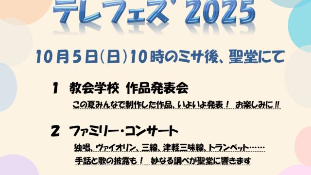 主の降誕 夜半のミサ 12月24日(火) 19時 〜 主の降誕 日中のミサ 12月25日(水) 10時 〜 どなたでもご参加になれます。主のご降誕をともに喜び祝いましょう。なお、24日のミサは後日配信されます。