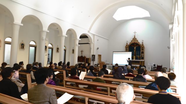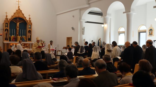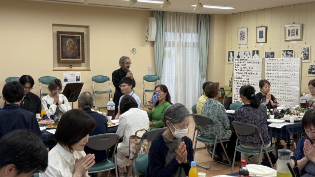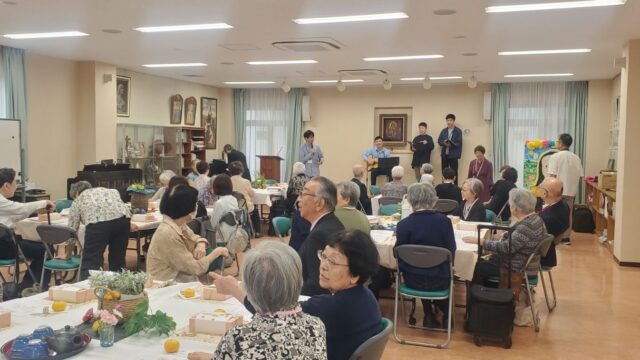 さわやかな秋晴れとなった10月12日、関町教会では毎年恒例の慶老会が開かれました。普段はなかなか外出できない方も付き添いの方に伴われて10時のミサに与り、ミサ後テレジアホールへ。今年は35名の参加となりました。参加されたお一人お一人には神父...