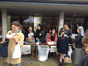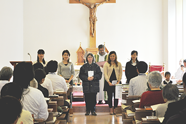 最後は、東日本大震災復興ソング「花は咲く」と関町教会に伝わる聖テレジアのメッセージがこめられた歌「サンタ・テレジア」を、青年バンド「愛伝説」と有志の伴奏で全員で歌い、閉幕となりました。