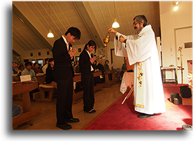 そして「キリストの教えを心のともしびとし未来の世界を担っていくことができますように」と神父さまから祝福を受け、大人になったしるしとして御血を拝領しました。