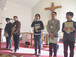 1月10日、関町教会では新成人7名のうち3名を迎えてミサの中で祝福が行われ、これからの人生の道を正しく歩んでいけるよう、神さまの導きを皆で祈りました。