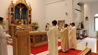 冒頭、神父様からは、大人としてこれからさまざまな経験を積んでいく新成人の皆さんに向け、八木重吉の詩「こころよ」を引き、「神さまに会いたくなったらいつでも教会に戻っておいで」とのメッセージが贈られました。また、冬休みを終え、久しぶりに集まった神学生の皆さんからは、150年の歴史をもつ長崎の小神学校の祝賀会、佐賀県馬渡島(まだらじま)でのお正月など、故郷で過ごされたクリスマスとお正月のお話に加え、「失敗を恐れて人との関わりを避けることがないように」など、新成人の皆さんにエールが送られました。