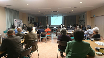3月19日には、プロジェクターでその画像を映し、内部全体、内陣、2階席、信徒席、入口、窓・天井などのカテゴリーごとに特徴を吟味するという催しが行われました。