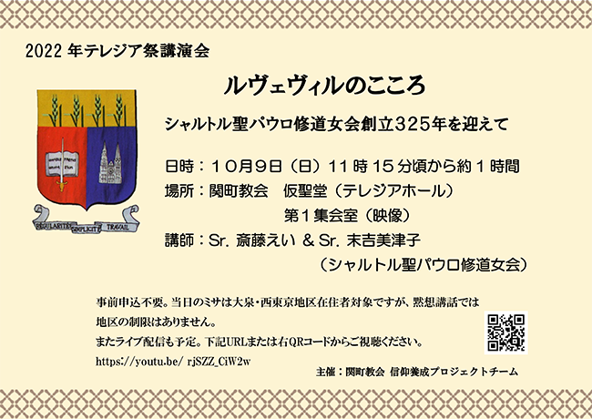 また主日のミサではありませんので、他教会の方もご参加になれますが、体調がすぐれない場合は参加をお控えください。